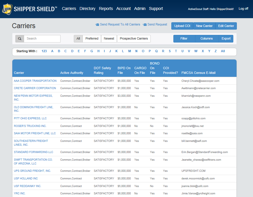 Automate your Carrier Pre-Screening process with our Online Carrier Profile and shop for new carriers amongst Shipper Shield Registered carriers!